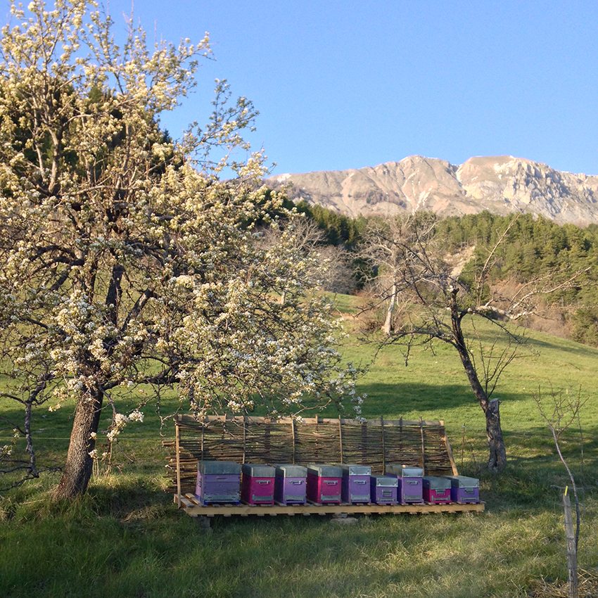 Je suis installée dans les Hautes-Alpes, non transhumante. Je dispose de trois ruchers qui me permettent de produire du miel et de la gelée royale.
