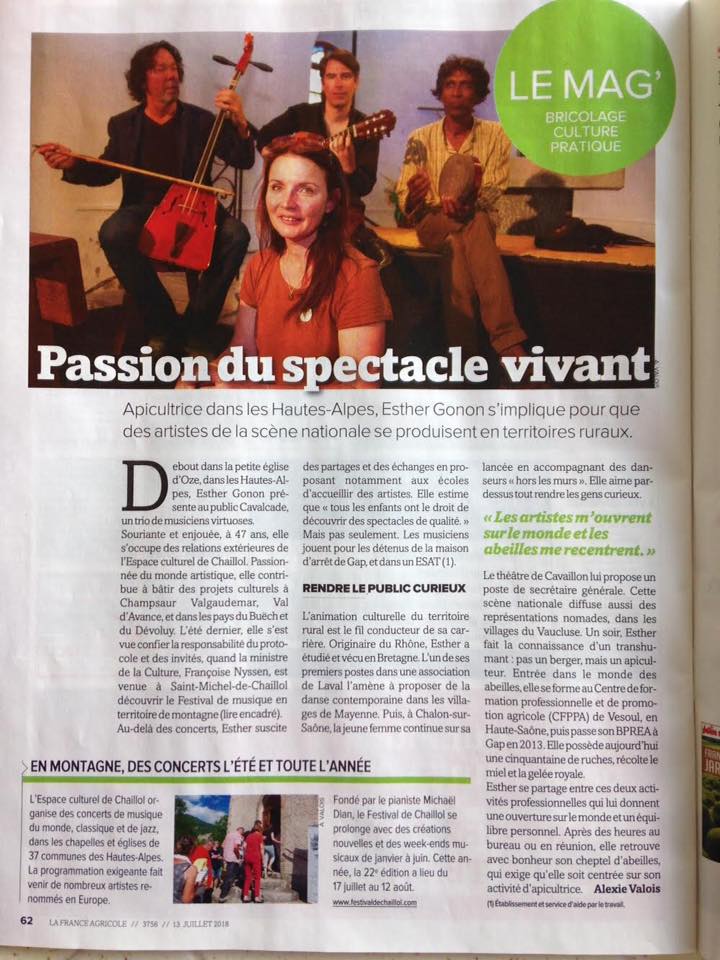 Et la culture a, à nouveau, fait appel à moi : poste de chargée de communication et de développement des publics au festival de Chaillol ! SUPER, inespéré un mi-temps qui permettait de concilier l’amour des abeilles et l’attachement aux artistes et à la création. Le festival a grandi et un temps partiel ne correspondait plus… départ pour une autre vie en septembre 2018. Formation en plantes aromatiques et médicinales pour comprendre un peu mieux ce que butinent mes abeilles ; passage par la Cinémathèque de Montagne (je vous invite d’ailleurs à consulter les parcours thématiques que j’ai choisis pour vous parmi les 70 disponibles > ICI !). Vous avez également pu me croiser à la Librairie Papeterie Au coin des mots passants ou encore à la loupiote que je fréquente assidûment. Je suis à nouveau impliquée dans le domaine culturel, j’accompagne Cécile Brochoire, directrice de la compagnie de théâtre Chabraque dans les missions de diffusion et de production de ses spectacles.