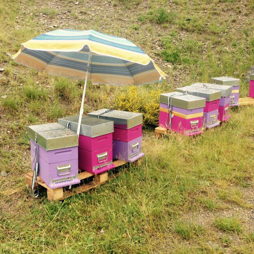 Parfois lorsqu’on doit aller récolter … il pleut ! Petit dispositif pour protéger les abeilles ! L’apicultrice se mouille, elle ! Car si on ne récolte pas … on met une belle pagaille en élevant des dizaines de reines ! ce qui peut être bien… mais là ce n’est pas le but !