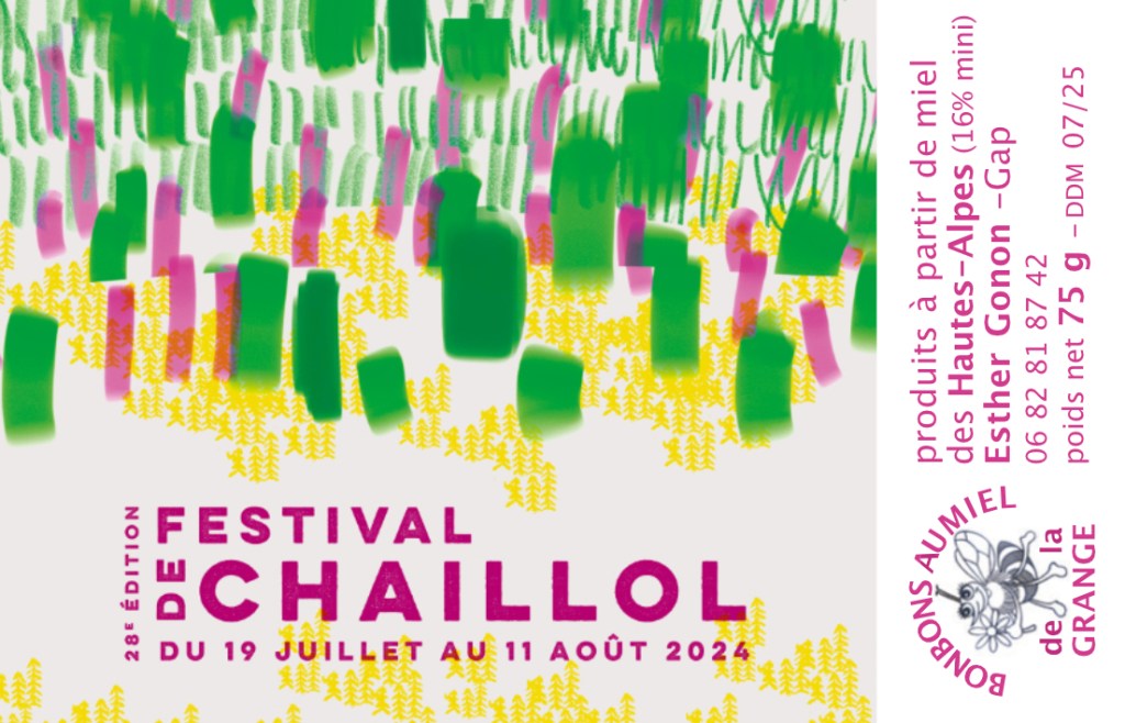 - Je réalise des étiquettes pour les cadeaux artistes du festival de Chaillol à partir de leur visuel annuel depuis quelques années.